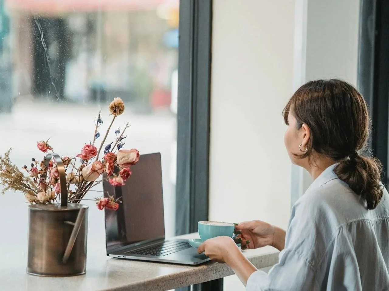 Long periods of screen use often cause the shoulders to drift forward.